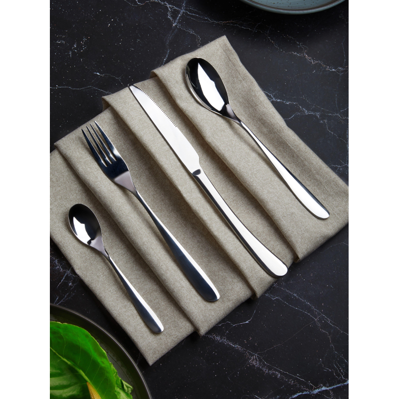 Ложка столовая Mielaje (312) 22.1 см нержавеющая сталь.Столовые приборы изготовлены из стали 430, являются приборами высокого класса. Ослепительный блеск, функциональность, надежность, изысканная элегантность и утонченность стиля — все это ярко отличает столовые приборы фирмы Mielaje.В нержавеющей стали 430 содержится никеля (0.85%), не более 0.8% углерода и не менее 50% железа. Хром связывает кислород на поверхности продукта, образуя пленку, защищающую железо от окисления (ржавчины). Никель также повышает коррозионную стойкость нержавеющей стали. Следовательно, чем выше содержание никеля, более устойчива нержавеющая сталь к коррозии.Сталь марки 430 — это сталь высокого качества (сталь, легированная хромом, никелем и марганцем, сохраняющая при охлаждении до комнатной и ниже структуру твердого расплавленного раствора — аустенита) с низким содержанием углерода. Данная сталь долго сохраняет свой первоначальный внешний вид даже при интенсивном использовании и регулярном мытье, благодаря высокому качеству материала используемого для их изготовления. — перед первым использованием требуется тщательно промыть изделия; — хранить изделия в чистом, сухом виде; — не рекомендуется использовать губки с абразивным слоем; — не рекомендуется промывка изделий в посудомоечной машине с использованием моющих средств, в состав которых входит активный кислород.