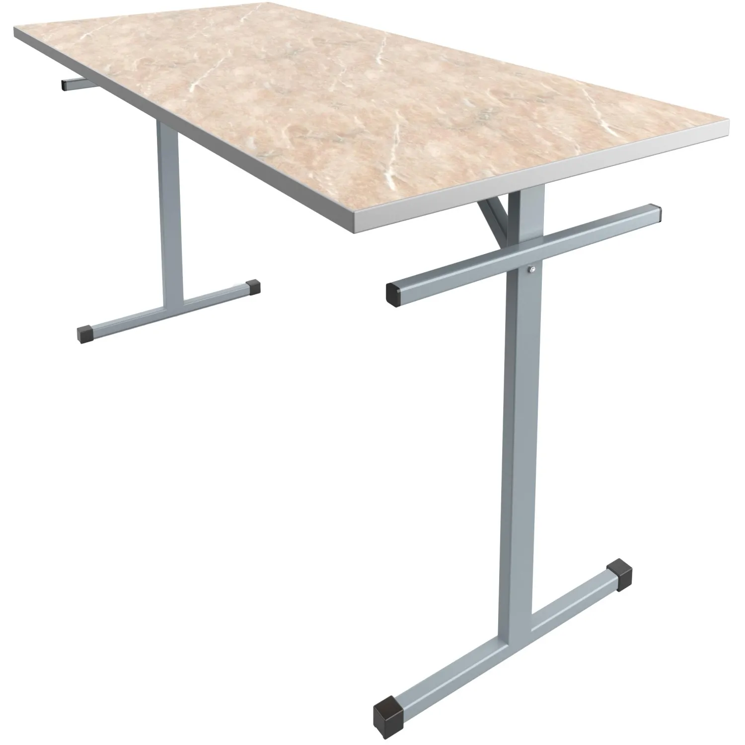 Стол обеденный под скамью. Столешница обеденного стола изготавливается из ДСП толщиной 26 мм с покрытием износостойким пластиком. Торцы у столешницы закрываются ударопрочной кромкой ПВХ толщиной 2 мм. Металлический каркас стола выполнен из металлического профиля сечением 25×25 мм и 25×40 мм с толщиной стенок не менее 1.2 мм и покрыт порошковой краской, стойкой к химическим и механическим воздействиям. Опоры стола соединяются между собой траверсой, выполненной из металлического профиля сечением 25×40 мм, что придает конструкции стола дополнительную жесткость. На свободных концах труб установлены заглушки из ударопрочных полимеров. Каркас стола имеет полимерные подпятники, предотвращающие повреждение напольного покрытия. Крепление столешницы — болты с шестигранной головкой и футорки. Изображения товаров на сайте не могут гарантировать точную цветопередачу.