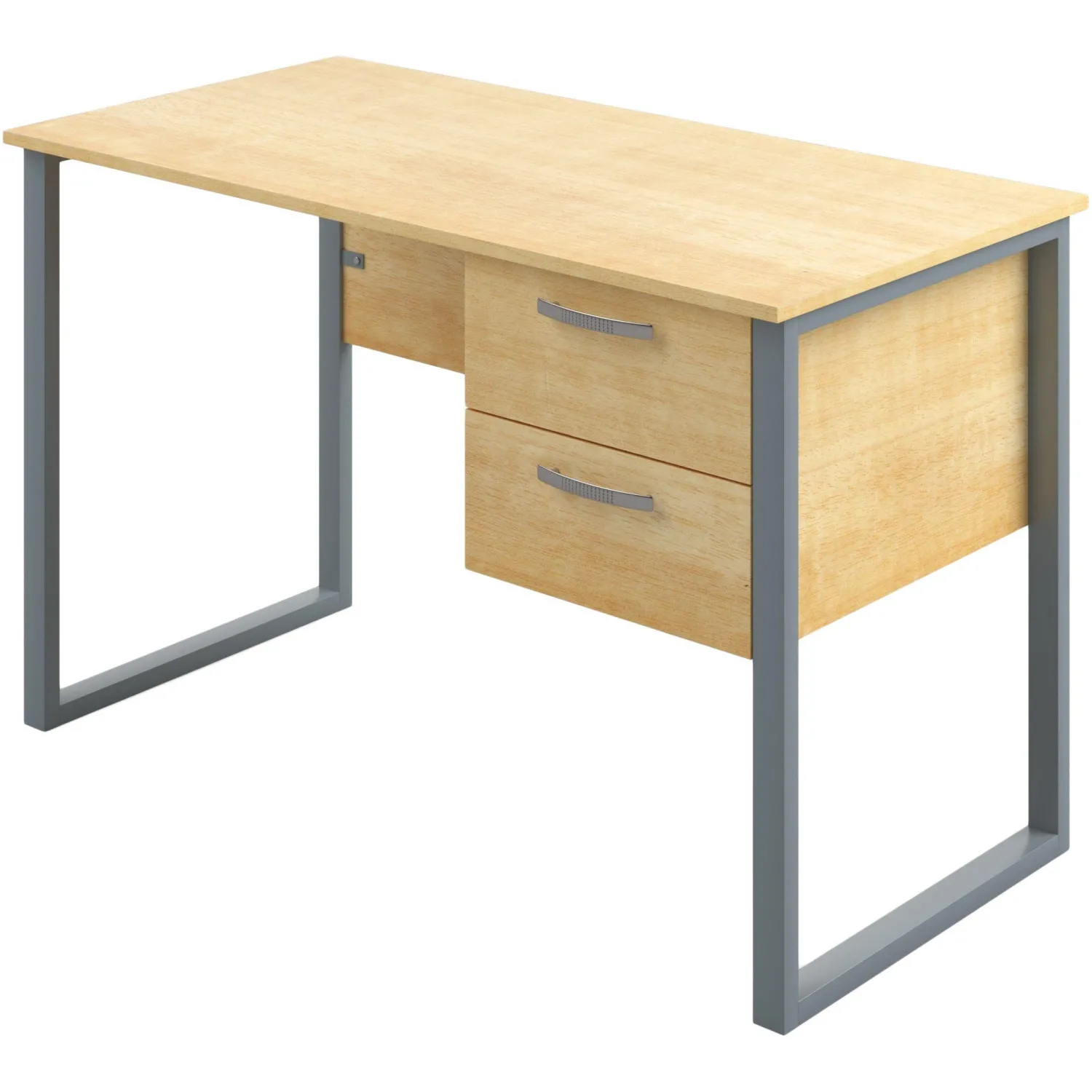 Стол учителя. Столешница, фронтальная панель и подвесная тумба стола выполнены из ЛДСП толщиной 16 мм. Торцы столешницы и фасадов ящиков закрыты противоударной кромкой ПВХ толщиной 2 мм. Торцы фронтальной панели, корпуса тумбы и элементов ящиков закрыты противоударной кромкой ПВХ толщиной 0,5 мм. Опоры стола выполнены из прямоугольного профиля 25×40 мм с толщиной стенок не менее 1,5 мм и покрыты порошковой краской стойкой к химическим и механическим воздействиям. Стол устанавливается на полимерные подпятники, предотвращающие повреждение напольного покрытия. Выдвижные ящики оснащены роликовыми направляющими и металлическими ручками.