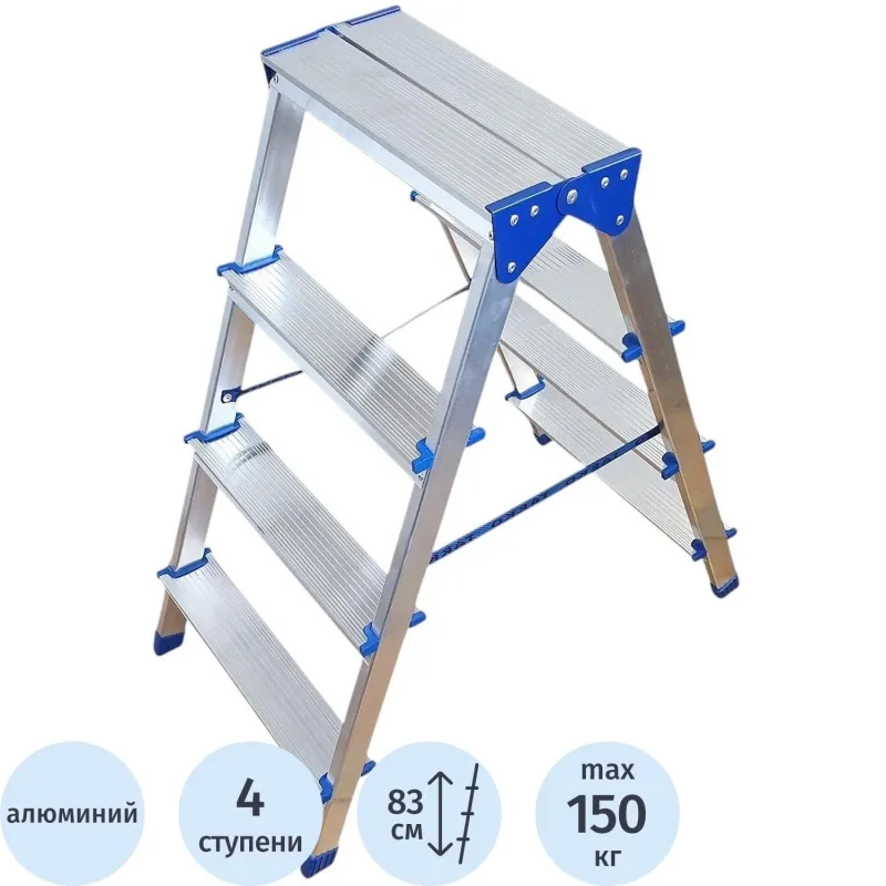 Стремянка алюминиевая двусторонняя 2×4 ступени Tarko (T04204)