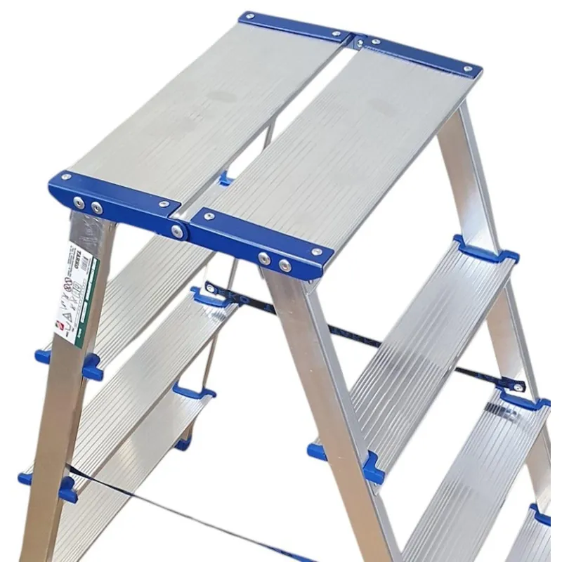 Двухсторонняя алюминиевая стремянка с увеличенной площадкой — это профессиональное решение для безопасной и удобной работы на высоте. Благодаря прочной конструкции и эргономичному дизайну, она подходит как для профессионального, так и для бытового использования.