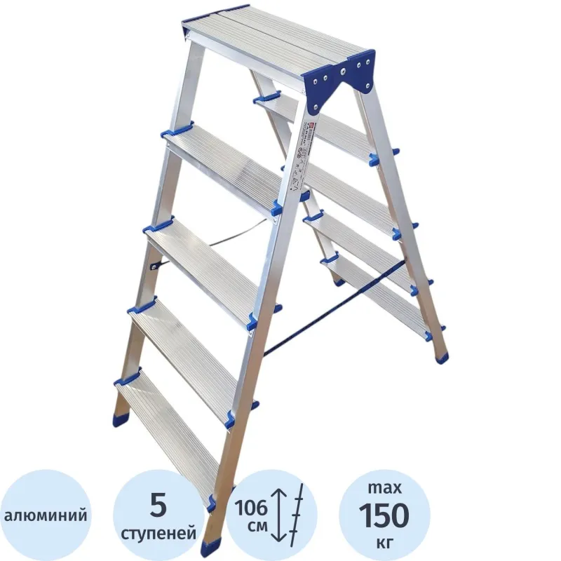 Стремянка алюминиевая двусторонняя 2×5 ступеней Tarko (T04205)