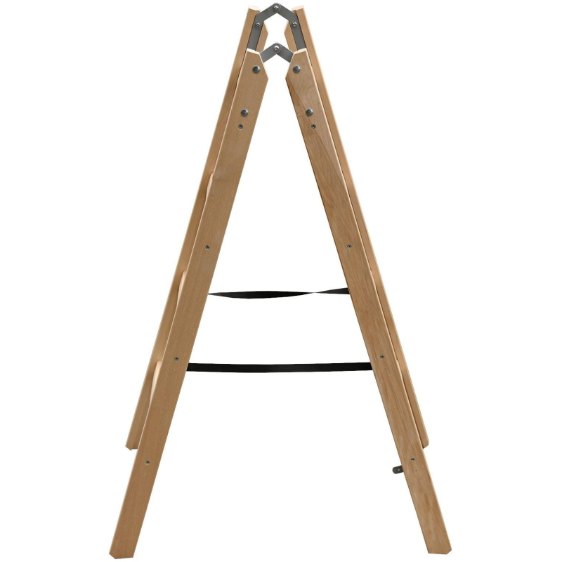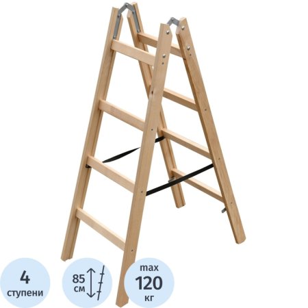 Стремянка деревянная двусторонняя с широкими ступенями — представляет собой свободностоящую переносную лестницу, имеющую две стороны для подъёма, и раскладывающуюся для подъёма на высоту.