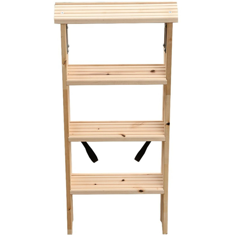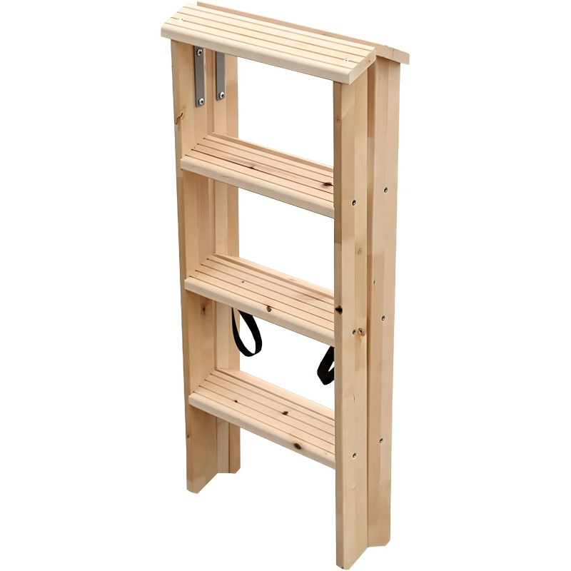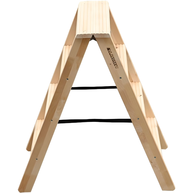 Стремянка деревянная двусторонняя с широкими ступенями — представляет собой свободностоящую переносную лестницу, имеющую две стороны для подъёма, и раскладывающуюся для подъёма на высоту.