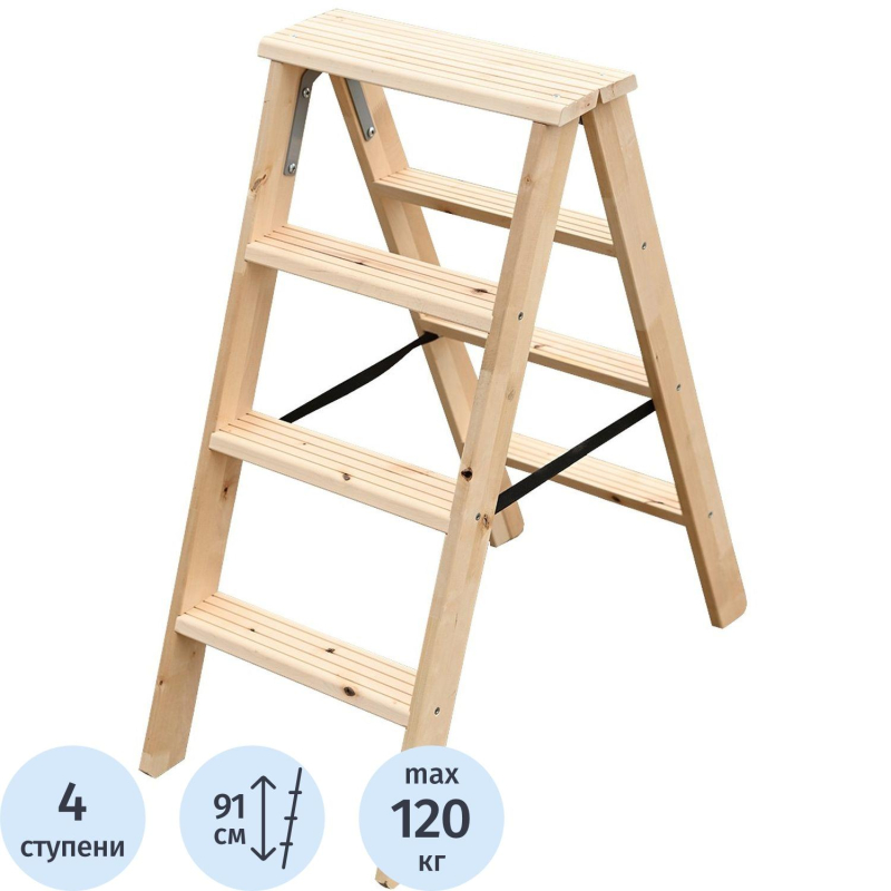 Стремянка деревянная двусторонняя 2×4 ступени Алюмет (WDS3204)