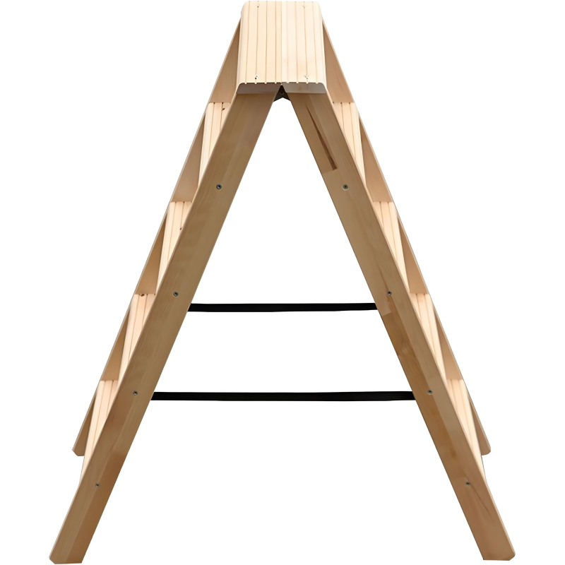 Стремянка деревянная двусторонняя с широкими ступенями — представляет собой свободностоящую переносную лестницу, имеющую две стороны для подъёма, и раскладывающуюся для подъёма на высоту.