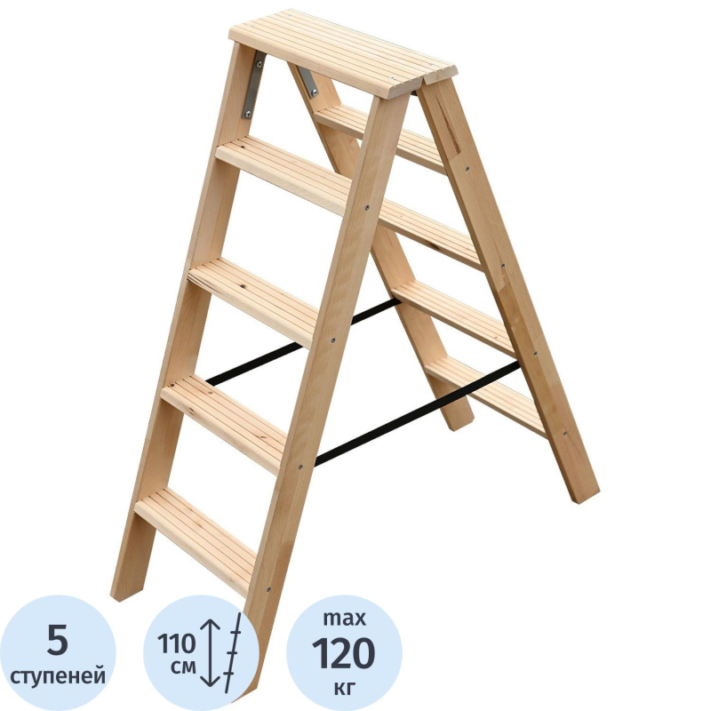 Стремянка деревянная двусторонняя 2×5 ступеней Алюмет (WDS3205)