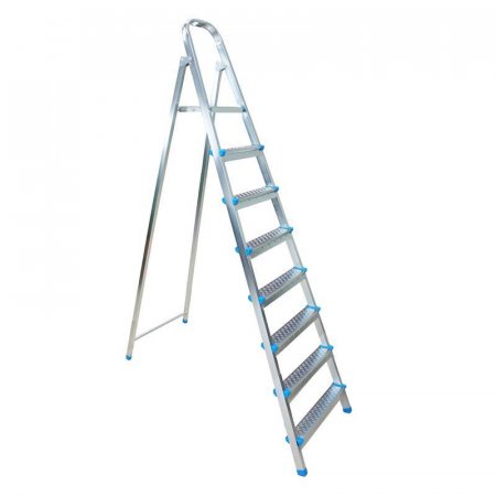 Стальная 8-ми ступенчатая оцинкованная стремянка Zalger. Для бытовых, ремонтных и отделочных работ. Широкая стальная платформа 25 см. и ступени 7,5 см. с рифленой противоскользящей поверхностью. Усиленное 4-х точечное крепление ступеней к профилю стремянки. Пластиковые насадки на ножках обеспечивают стабильность и безопасность. Размер в разложенном (рабочем) положении: 55,5x210 см. (ШxВ). Максимально достижимая рабочая высота: 340 см. Максимальная нагрузка на стремянку: 120 кг.