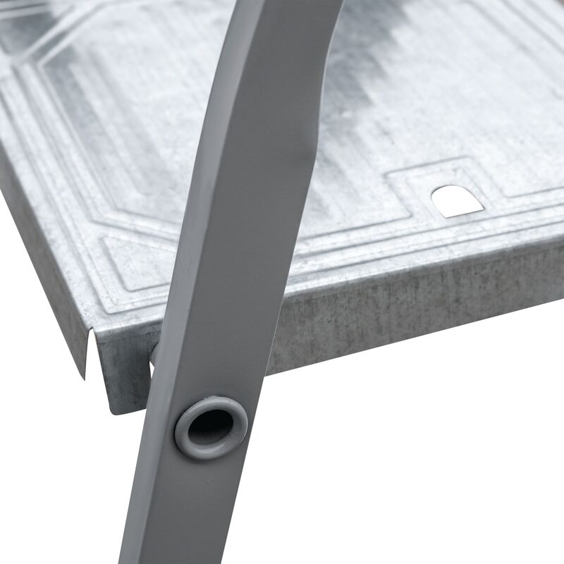 — Цельнотянутая площадка 255×255 мм из оцинкованной стали. Удобно ставить инвентарь.
