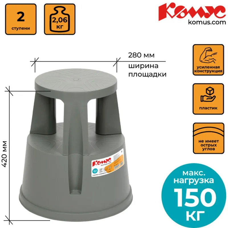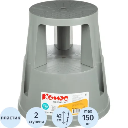 Стремянка-табурет пластиковая «Комус» с 2-мя ступенями (серая). Подходит для использования в торговой сфере, на складе, архиве, библиотеке. За счет платформы на роликах, которые находятся на мини-амортизаторах, она легко катается, а при нагрузке плотно прижимается к полу и становится более устойчивой. Полупрофессиональная, приставная. Преимущества изделия: — Обладает прочной конструкцией, усиленной ребрами жесткости, благодаря чему надежна в эксплуатации. — Изготовлена из качественного пластика и не имеет острых углов. — Ролики позволяют свободно перемещатьстремянку-табурет без нагрузки и прочно фиксировать под нагрузкой. — Резиновые вставки по периметру нижнего края гарантируют крепкое сцепление с полом. — Удобно хранить и транспортировать благодаря компактным размерам. Внешний вид и/или характеристики товара могут быть изменены производителем в соответствии с производственным процессом.