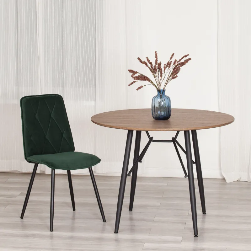 Стул обеденный Комус Мебель Frank идеально подходит для загородного дома, городской квартиры, ресторана или кафе. Современный и лаконичный дизайн делает его универсальным элементом интерьера. Каркас спинки выполнен из металлического профиля, что придаёт стулу надёжность и долговечность. Сиденье с основанием из гнутоклеёного шпона толщиной 10 мм и наполнителем из пенополиуретана (ППУ) сохраняет свою форму со временем, обеспечивая износостойкость и комфорт. Прочные конусообразные опоры диаметром 26/16 мм с толщиной металла 1. 2 мм обеспечивают устойчивость и надёжность. Обивка из ткани велюр придаёт стулу элегантный внешний вид, гармонируя с различными стилями интерьера. Этот материал легко чистится, хорошо пропускает воздух и приятен на ощупь. Высота спинки — 400 мм, с наклоном — 440 мм. Стул рассчитан на максимальную нагрузку до 120 кг.