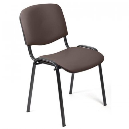 Стул офисный Изо на металлическом каркасе, покрытом износостойкой краской черного цвета. Обивка выполнена из высококачественной искусственной кожи коричневого цвета.