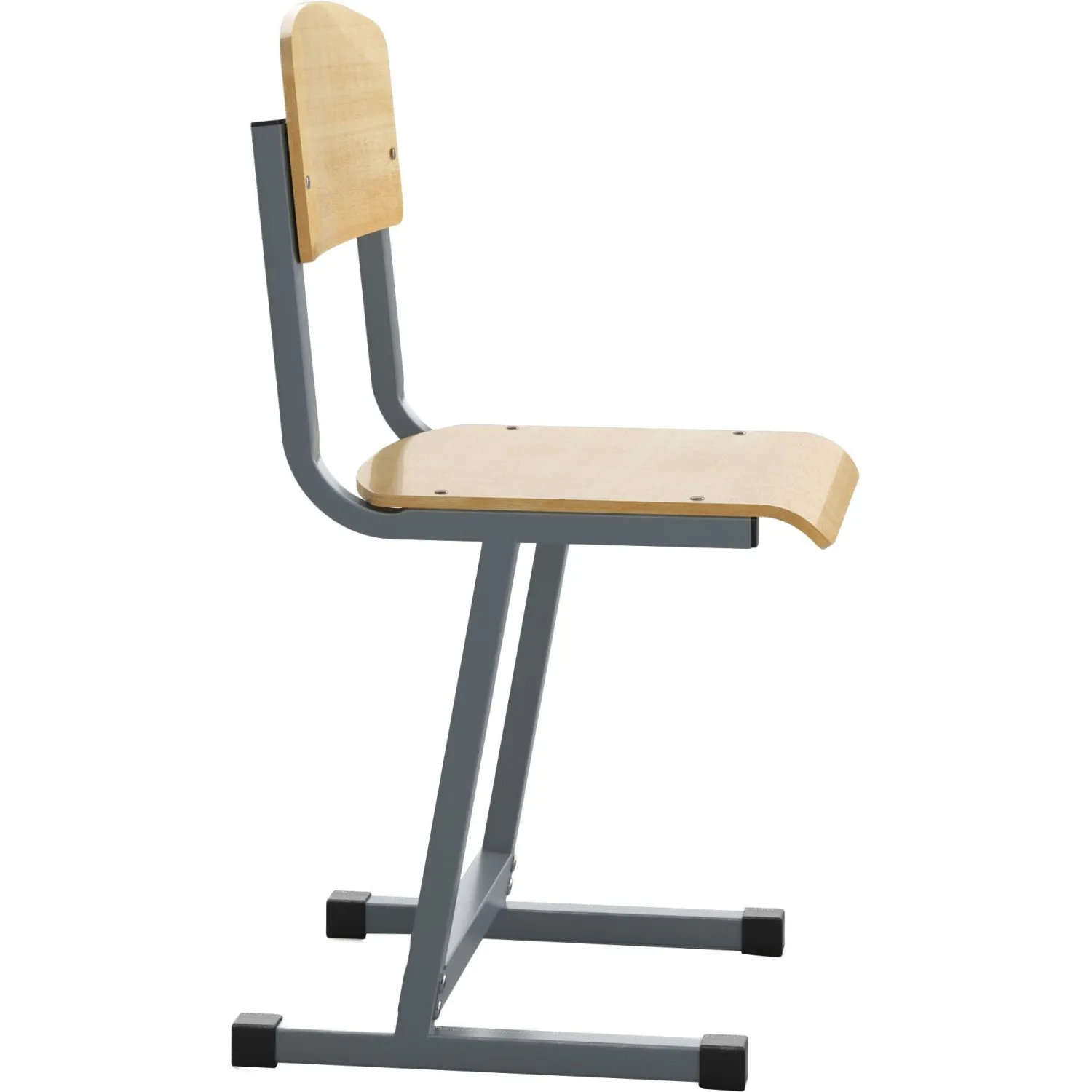 Стул. Сиденье и спинка стула изготовлены из гнутоклееной фанеры толщиной не менее 8 мм, покрыты бесцветным лаком. Крепление сиденья и спинки к каркасу стула осуществляется при помощи мебельных болтов и гаек. Металлический каркас стула разборный — состоит из трех элементов: двух боковин и связи. Боковины стула цельносварные, выполнены из профиля квадратного сечения 25×25 мм с толщиной стенок не менее 1,2 мм. Стойки стула наклонены вперед на 10 градусов, а спинка имеет угол наклона 95 градусов. Связь выполнена из профиля прямоугольного сечения 25×40 мм с толщиной стенок не менее 1,2 мм и крепится к стойкам стула на 4 болта с гайками Эриксона. Металлокаркас покрыт порошковой краской, стойкой к химическим и механическим воздействиям. На свободных концах труб установлены заглушки из ударопрочных полимеров. Каркас стула имеет полимерные подпятники, предотвращающие повреждение напольного покрытия. Стул имеет цветовую маркировку в соответствии с ростовыми группами.В рамках ребрендинга производится перевод данного артикула с ТМ Комус на ТМ Комус Мебель с сохранением всех потребительских характеристик товара. На переходный период допускается поставка данной продукции в двух вариантах дизайна упаковки.