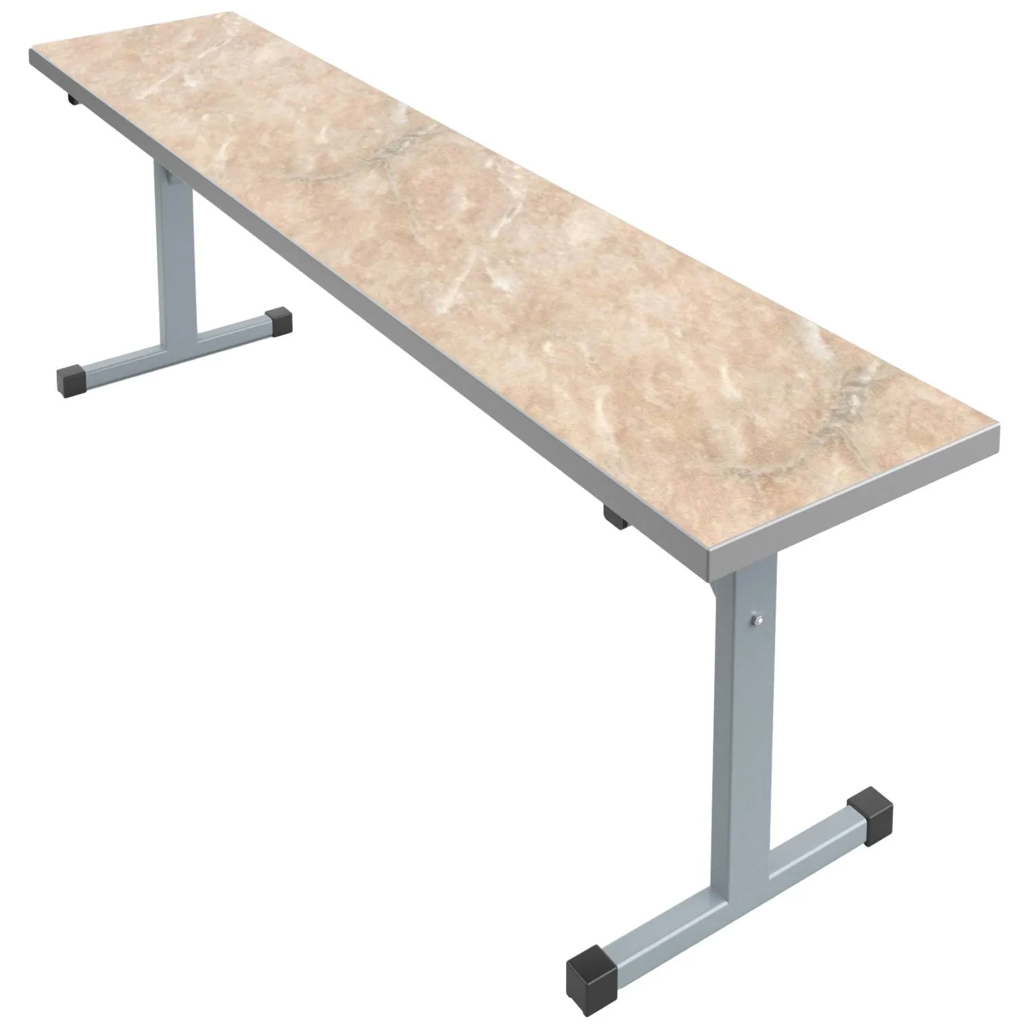 Сиденье скамьи выполнено из ДСП с пластиковым покрытием толщиной 26 мм. Торцы сиденья закрыты кромкой ПВХ толщиной 2 мм. Металлический каркас разборный и покрыт порошковой краской, стойкой к химическим и механическим воздействиям. Опоры и ножки изготавливаются из профиля квадратного сечения 25×25 мм. Вертикальные стойки скамьи изготавливаются из прямоугольного профиля 25×40 мм с толщиной стенок не менее 1.2 мм. На свободных концах труб установлены заглушки из ударопрочных полимеров. Каркас скамьи имеет полимерные подпятники, предотвращающие повреждение напольного покрытия. Крепление сиденья — болты мебельные с гайками. Изображения товаров на сайте не могут гарантировать точную цветопередачу.