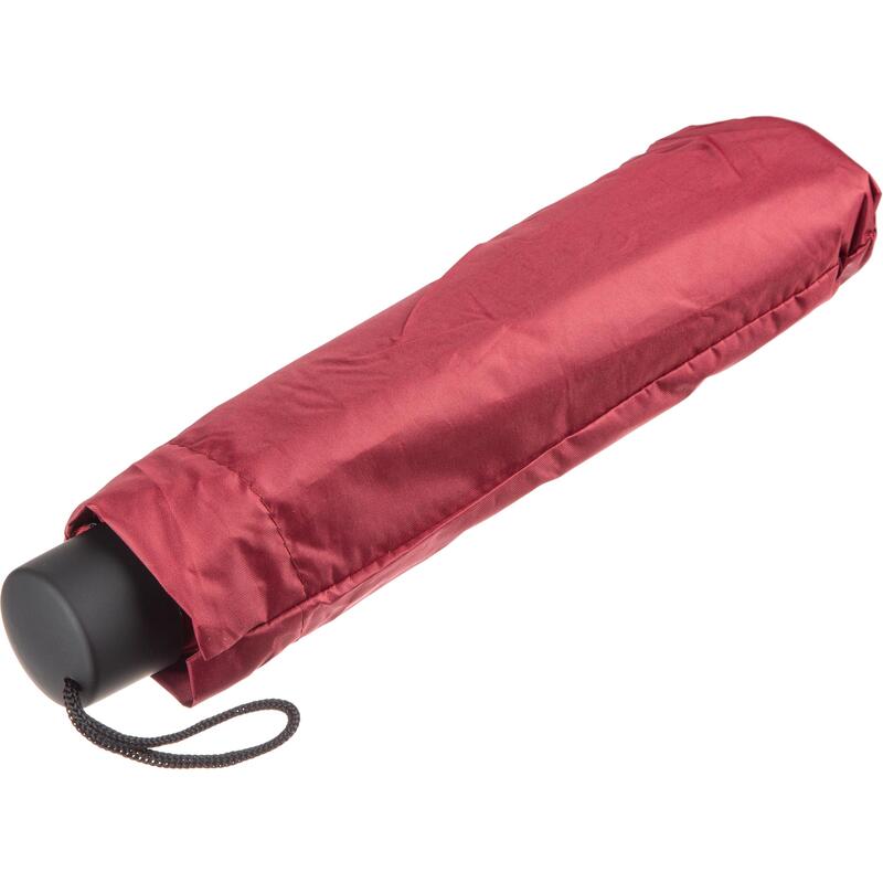 Зонт механический, складной, цвет бордо, длина зонта в сложенном виде 24 см, длина зонта в разложненном виде 55 см, диаметр купола 98 см, купол из 100% полиэстера, с водоотталкивающей пропиткой, система «Анти ветер». 8 стальных спиц.