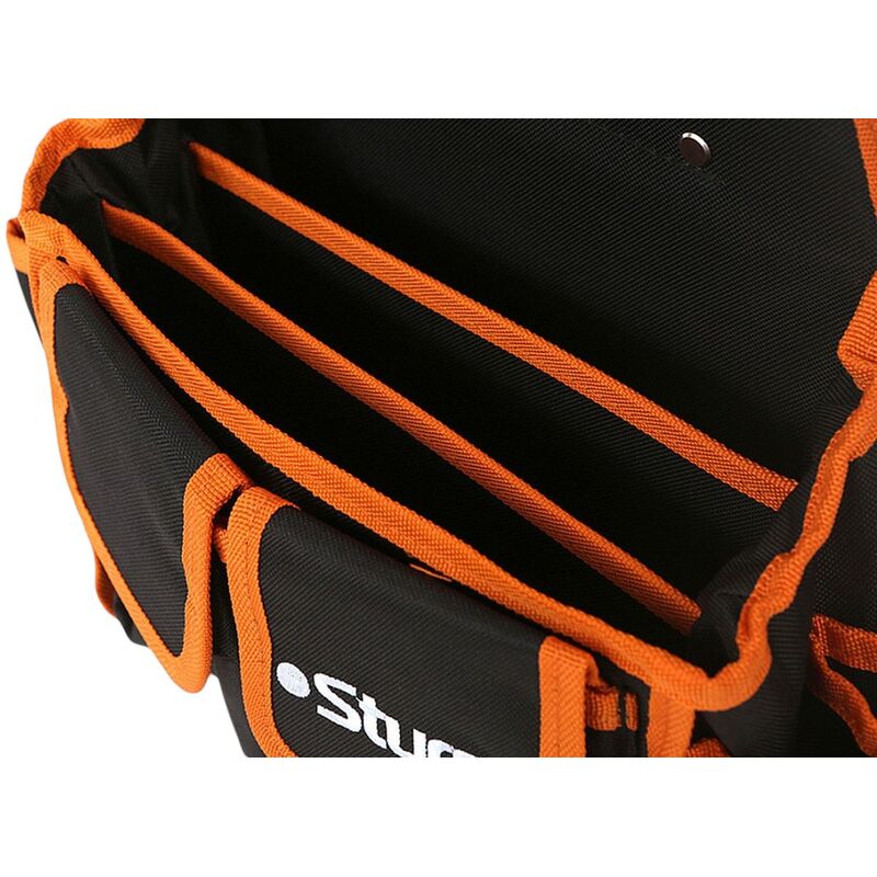 Сумка-органайзер выполнена из прочного и износостойкого тканого материала, обеспечивающего ее высокую прочность и долговечность. Большое количество карманов позволит разместить различный инструмент, аксессуары и расходные материалы соблюдая порядок.