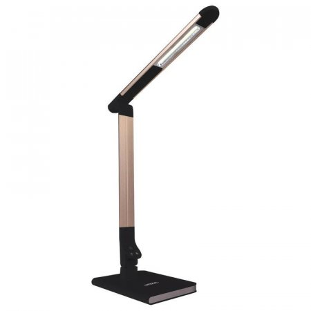 Простой, но при этом стильный и надежный, настольный светодиодный светильник National NL-41LED с нейтральной температурой свечения (4000-4500К) с возможностью регулирования уровнем освещения. Управление сенсорное. Черное основание с металлическими вставками под цвет красного золота.