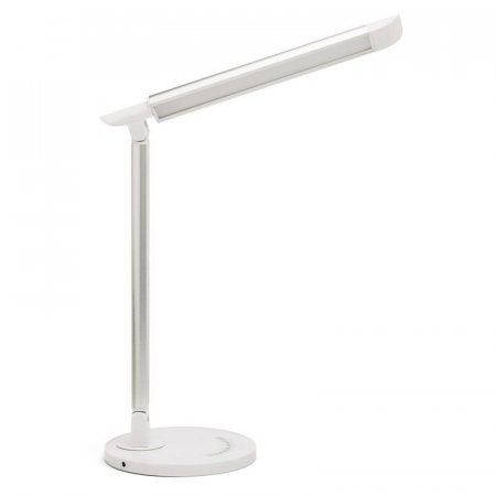 Светодиодный светильник выполнен в стиле Хай-Тек, имеет сенсорное управление, температура светового потока 6000 ? 6500 К (холодный белый свет), этот свет настраивает на рабочий лад. Дискретное изменение яркости позволит подобрать нужный режим освещения.