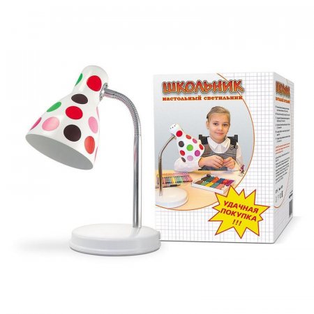 Настольная лампа необходима как источник направленного света, так как при рассеянных потоках ребенку трудно фокусировать взгляд на символах, считывать информацию. Вся конструкция светильника выполнена из металла. Светильник рассчитан на использование лампы с цоколем E27. Лампы с этим цоколем имеют наибольшее распространение. Вы сможете использовать светодиодную, энергосберегающую или галогенную лампу. Допускается и установка ламп накаливания. Необходимо соблюдать единственное условие: мощность лампы не должна быть более чем 60 Вт.