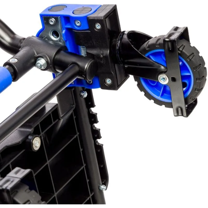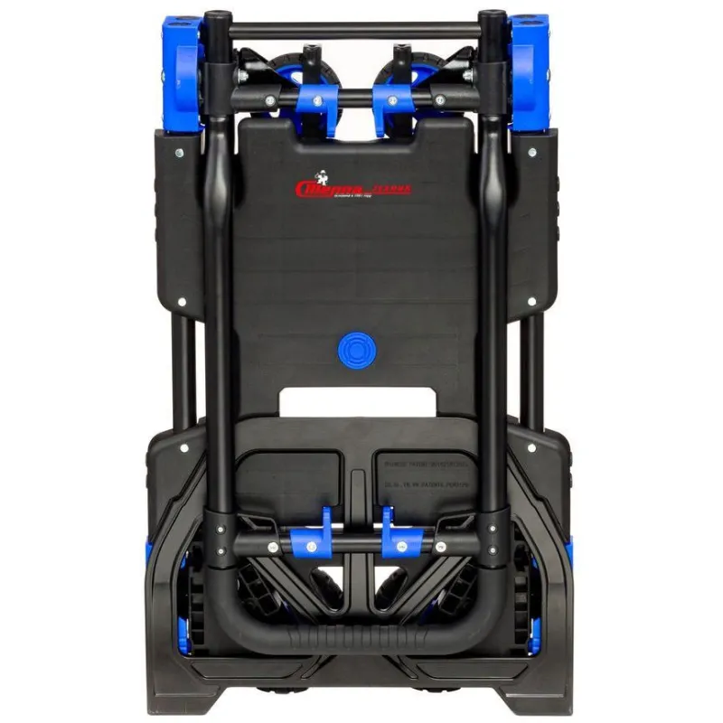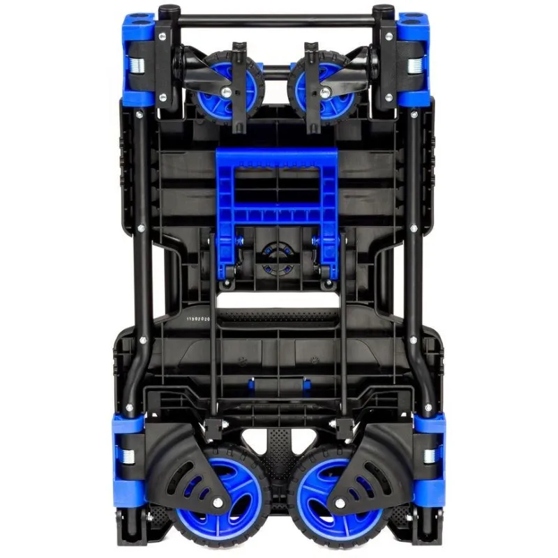 Тележка трансформер MagnaCart FW-90TP складная универсальная тележка предназначена для работы с разного рода грузами. Тележка может использоваться как двухколесная, при необходимости трансформируется в четырехколесную тележку и может использовать в наклонном варианте. Складные тележки идеально подходят для транспортировки выставочного оборудования, обслуживания маленьких складов и перевозки грузов в домашних условиях или во время путешествий. В сложенном виде, за счет компактных размеров тележку можно легко разместить в багажнике машины. Ручка стальная с термопластичной резиной. Платформа — PP (полиуретан). Откидная платформа — сталь. Колеса из термопластичной резины с роликовыми подшипниками: 2 малых диаметром 90 мм и 2 больших диаметром 125 мм. Высота ручки в рабочем состоянии: в четырехколесном платформенном варианте минимум 685 мм, максимум 920 мм, в двухколесном варианте минимальная высота 1100 мм, максимальная 1340 мм. В двухколесном варианте тележка может перевозить грузы весом до 68 кг. В горизонтальном положении на четырех колесах грузоподъемность тележки до 138 кг. Габариты тележки в сложенном виде 416×450×110 мм. Собственный вес тележки 7,3 кг.