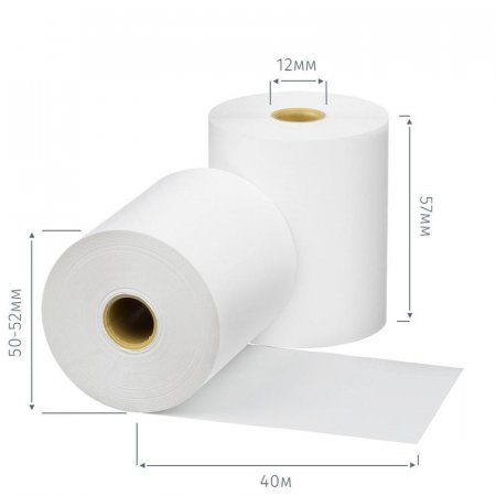 Чековая лента изготовлена из термобумаги. Бумажное полотно с наружным термослоем имеет ширину 57 мм и общую длину 40 метров. Диаметр намотки — 50–52, диаметр втулки — 12 мм. Поставляются в термоусадочной пленке и гофрокоробах. Ролики для термопечати используются в кассовых аппаратах и калькуляторах со встроенным или внешним термопринтером. Цвет печати — черный.