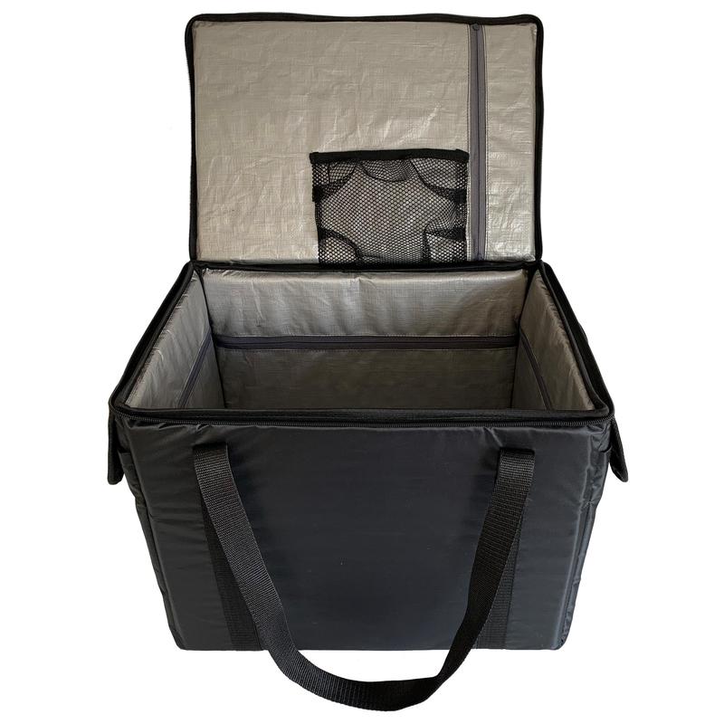 Термосумка для доставки продуктов, готовой еды, мороженого, замороженных полуфабрикатов станет незаменимым помощником в профессиональной доставке готовых блюд. Этот аксессуар выполнен в стильном черном цвете из ткани нейлон, отличающейся плотным плетением и износостойкостью. Внутри термосумка оснащена теплоизоляционным слоем, а снаружи — ручками для комфортного переноса продуктов на дальние расстояния. Сумка герметично закрывается с помощью молнии. Используется вместе с аккумулятором холода, который предварительно замораживается в морозильной камере, а затем размещается в кармане сумки. Снаружи сумки также имеется два боковых кармана, в которых можно размещать необходимые мелочи, а также распечатанные документы на заказ, флаеры и прочую рекламную полиграфию. Карманы закрываются с помощью застежки-липучки.По запросу возможно нанесение на сумку логотипа компании.Размер термосумки: 40?30?27 см.Объем термосумки: 32 литра.Страна происхождения: Россия.