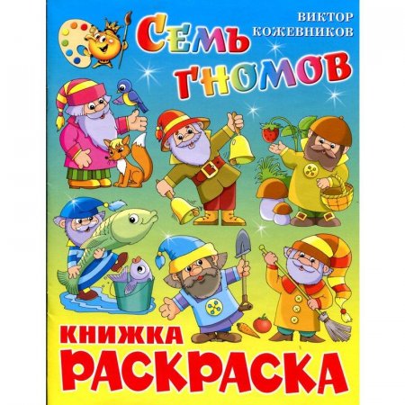 Раскраска «Семь гномов», рассчитанная на детей в возрасте от трех лет. Способствует развитию зрительных и пространственных представлений, мелкой моторики и творческих способностей. Книжка содержит крупные картинки с образцами для раскрашивания. Каждая иллюстрация сопровождается стихотворением. Объем раскраски — 16 страниц.