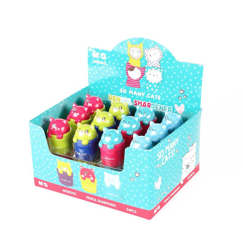 Компактная ручная точилка M&G So Many Cats для карандашей изготовлена из пластика. Имеет форму кошки и предназначена для заточки цветных и чернографитных карандашей диаметром 8 мм. Поставляется в четырех цветах. Размер: 35×53×33 мм.Внимание! Товар поставляется в различных вариантах цвета без возможности выбора.