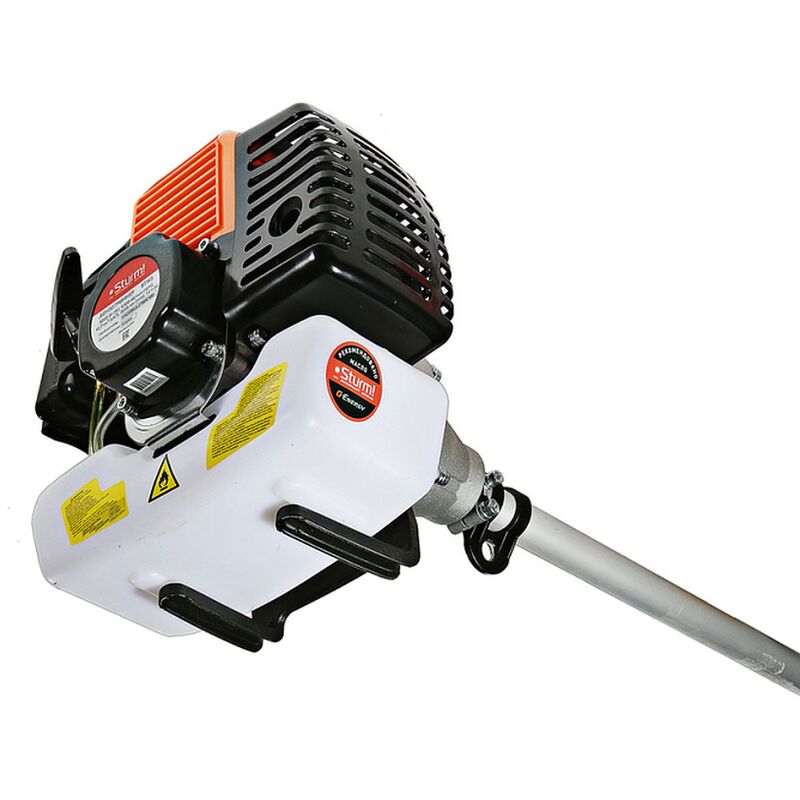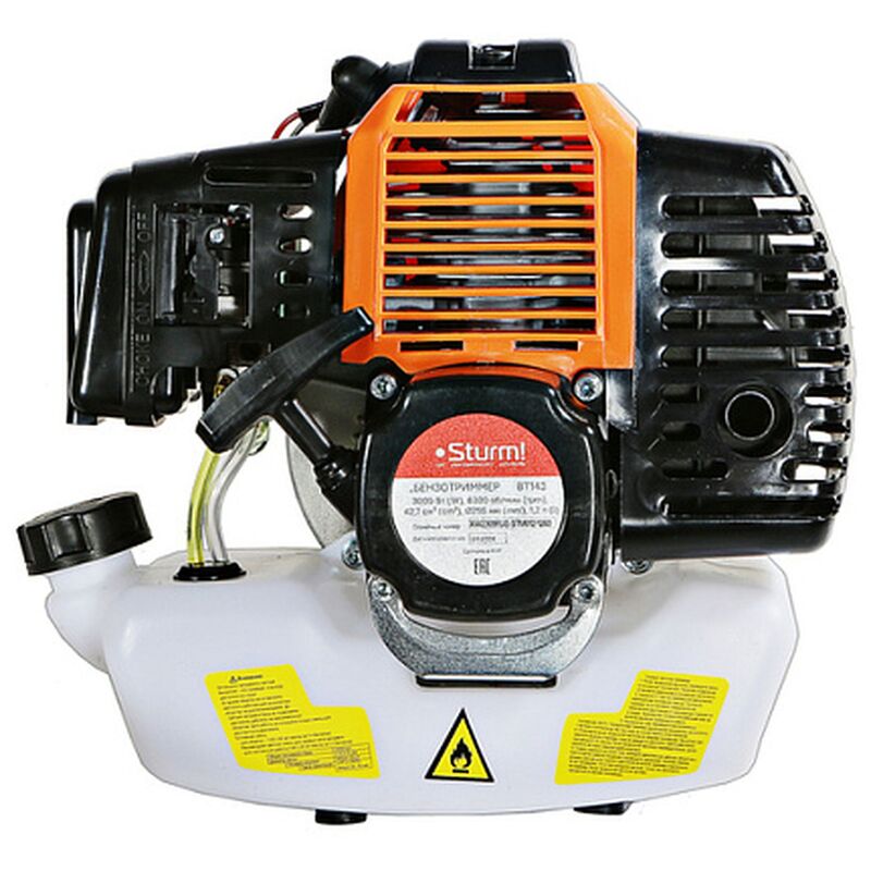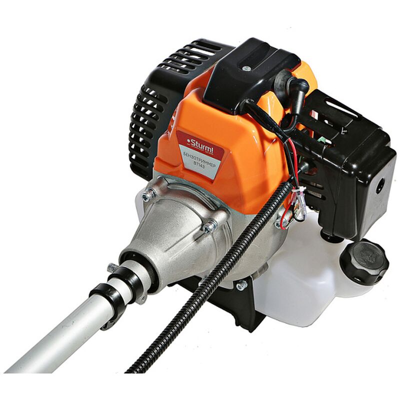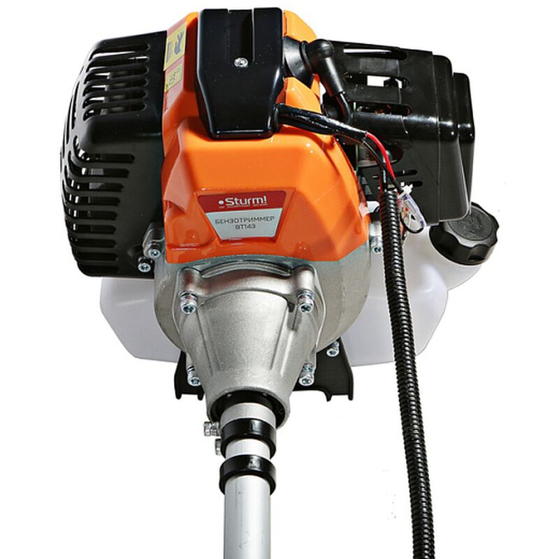 Триммер бензиновый Sturm BT143 — универсальная бензиновая коса бытового класса для ухода за приусадебной территорией площадью до 1000 м². Инструмент имеет классическую компоновку с прямой неразъемной алюминиевой штангой и кованым стальным валом внутри, нижним понижающим редуктором и U — образной рукоятью велосипедного типа — такая компоновка обеспечивает необходимый запас по прочности и удобна в эксплуатации для пользователя, особенно при обработке больших участков и работах на пересеченной местности.