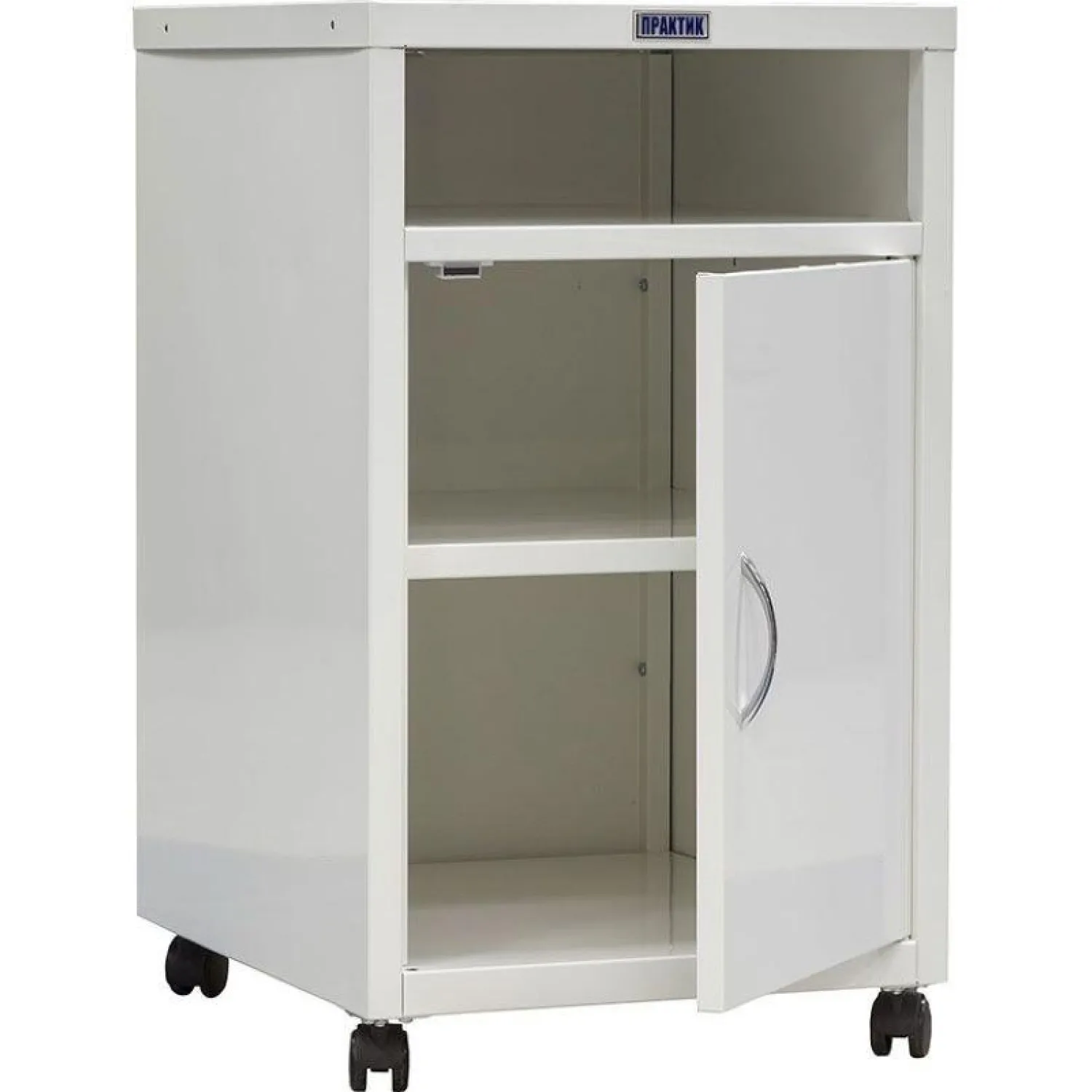Тумба медицинская подкатная предназначена для хранения в больницах и других медицинских учреждениях личных вещей, одежды, документов, а также может использоваться как приставной элемент мебели у рабочего стола или кровати. Изготовлена из стали толщиной 0.6 мм. Толщина двери — 0.7 мм. Нагрузка на полку — 15 кг. Тумба оборудована колесами 50 мм, два передних снабжены стопором. Цвет — белый (RAL 9016). Тип покрытия: гигиенически безопасное, коррозийно-устойчивое, порошковое. Поставляется в разобранном виде. Возможная опция — установка ключевого замка Практик (1000 комбинаций). Вес 14 кг. 2 отделения, одна полка. Высота без колес — 652.5 мм, высота с установленными колесами — 710 мм.