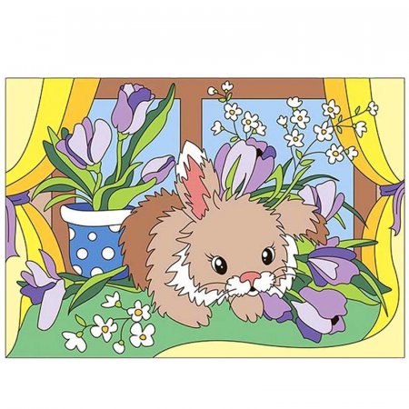 Симпатичный мультяшный персонаж так и просится под кисть художника. Плотная основа, яркие краски (8 цветов + 1 баночка с лаком), входящие в состав набора, сделают художником любого ребенка. Рисование по номерам не только дарит положительные эмоции, но и снимает стресс, развивает мелкую моторику и способствует формированию чувства цвета.