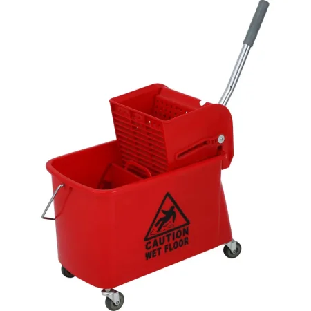 Ведро на колесах ЭкоКоллекция с двумя отделениями и механическим отжимом 20 л красное предназначена для проведения влажной уборки в небольших помещениях. Представляет собой ведро с двумя отделениями и установленным сверху механическим отжимом. Изготовлена из прочного пластика. По обеим сторонам инвентаря имеется знак Осторожно, скользко. Использование уборочных тележек дает ряд преимуществ: