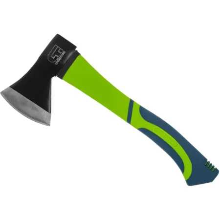 Топор универсальный Сибртех с топорищем из фибергласса 983 г (21644) позволяет осуществлять рубку, тесание и колку твердой или мягкой древесины. Он будет полезен на дачном и сельскохозяйственном участке при необходимости подготовки дров, рубки кустов, сучьев и других работ. Полотно оснащено полукруглой режущей кромкой с углом заточки 20–30 градусов, поэтому топором легко работать. ПреимуществаПолотно из стали 45 — топор оптимально подходит для непрофессионального применения. Прочность — полотно закалено до твердости 48–57 HRC (на высоте до 25 мм от режущей кромки).Заточенное лезвие — инструмент полностью готов к использованию. Качественное топорище — фибергласс устойчив к негативным воздействиям окружающей среды, имеет механическую прочность и гасит вибрации. Надежный хват — небольшой изгиб и обрезиненные вставки снижают риск проскальзывания топора в руках. Комфортная работа — небольшой вес полотна 600 г позволяет уменьшить нагрузку на руки. Компактность — топор оснащен небольшой рукояткой 365 мм. КомплектацияТопор;Упаковка. Внешний вид и/или характеристики товара могут быть изменены производителем в соответствии с производственным процессом.