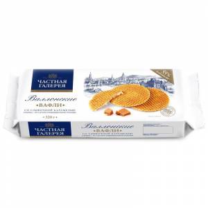 Вафли Частная Галерея Валлонские со сливочной карамелью 320 г — две сливочные вафли соединены между собой тонким слоем карамели. 55% карамельной начинки.