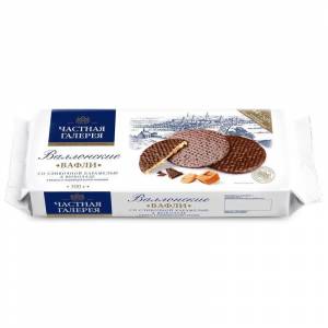 Вафли Частная Галерея Валлонские со сливочной карамелью в шоколаде 300 г. Единственный на российском рынке продукт такого формата — карамельные вафли, покрытые темным шоколадом.