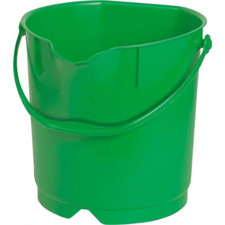 Ведро пластиковое FBK предназначено для мытья поверхностей и переноски пищевых продуктов. Ведро имеет круглую форму. Снабжено прочной пластиковой ручкой (не греется рядом с горячим оборудованием), носиком для дозированного слива жидкостей, сзади внизу ручкой для удобства переворачивания, приспособлением для подвешивания ведра донышком вверх, 3 мерные шкалы в литрах, американских и английских галлонах. Дно ведра снабжено бортиками для удобства освобождения ведра. Цвет — зеленый. Объем ведра 9 л.