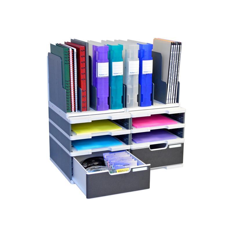 Сборный вертикальный накопитель Exacompta Modulotop имеет пять разделительных пластин, которые монтируются вертикально и/или под углом и образуют четыре отделения для хранения документов. Возможно расширение в ширину путем соединения со следующим вертикальным накопителем. Превосходно подходит для сортировки документов на почте, ресепшн, офисах, возможно размещение на столе или в шкафу. Сборка в комбинации с Modulodoc Sorter Exacompta (арт. 833532) и боксом с выдвижными лотками Exacompta (арт. 727001) создает гибкую систему сортировки и хранения документов. Размеры изделия (ДxШxВ): 255×300×288 мм. 25 лет гарантии.