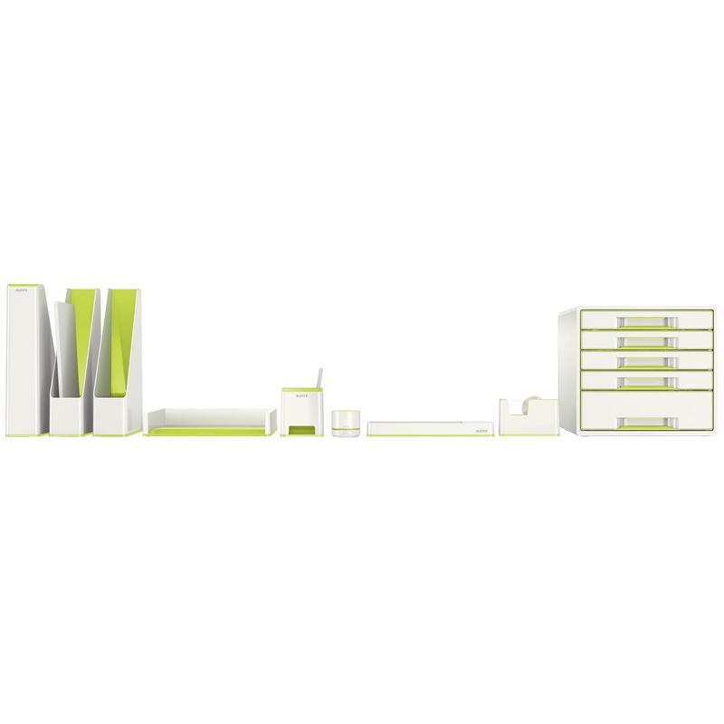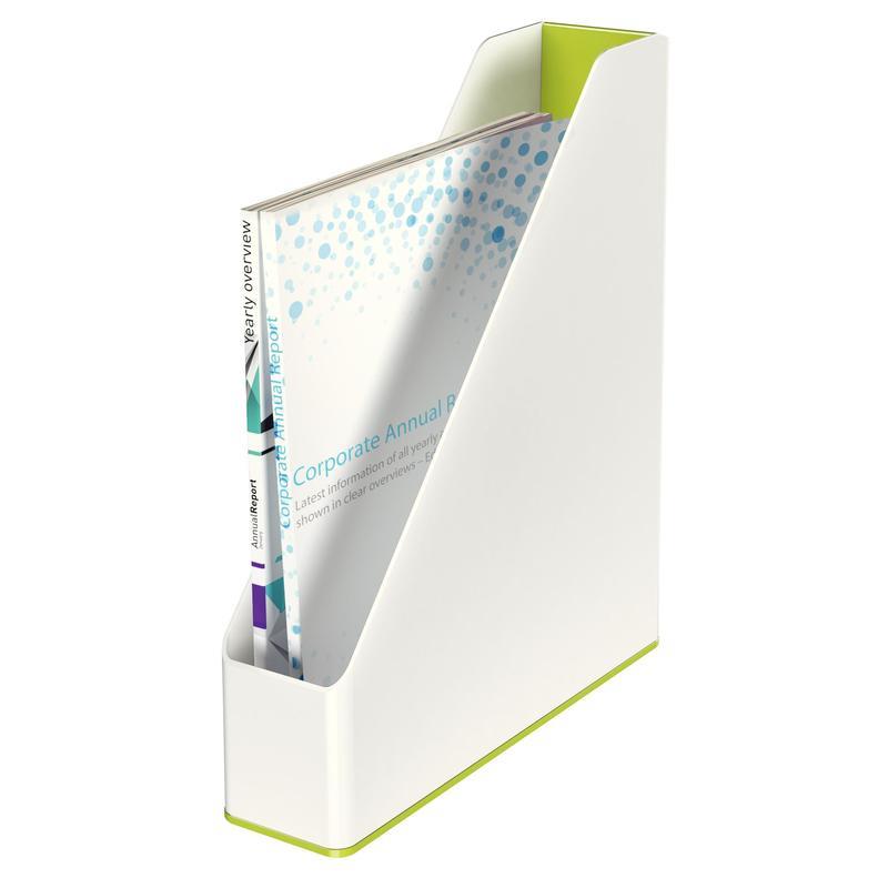 Вертикальный накопитель Leitz Wow предназначен для хранения и сортировки документов и печатной продукции формата А4. Яркое сочетание цветов, стиля и глянцевого покрытия. Сочетается с другими изделиями коллекции Wow. Изготовлен из полистирола. Цвет: белый/зеленый. Размеры изделия (ДxШxВ) : 272x73x318 мм.
