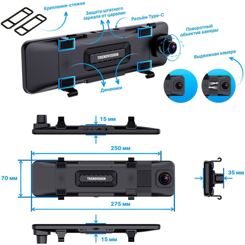 Автомобильный видеорегистратор TrendVision CarPlay Mirror (TVCPM) Внешний вид и/или характеристики товара могут быть изменены производителем в соответствии с производственным процессом.