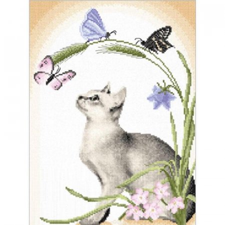 Набор для вышивания Panna «Летний полдень». Милый котенок с бабочками в технике счетный крест.
