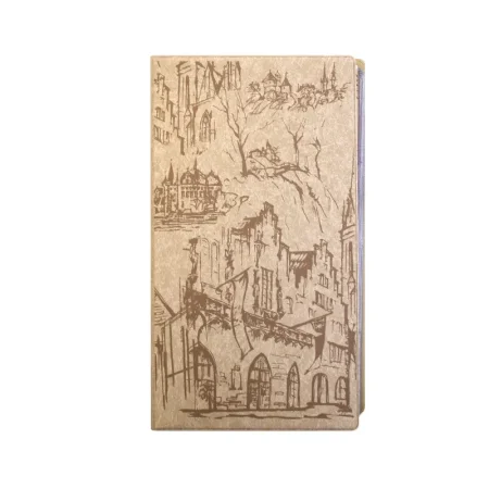 Вертикальная настольная визитница ’Комус’ с кольцевым механизмом изготовлена из ПВХ бежевого цвета, размер — 132×250 мм. Корешок — 25 мм. Имеет внутренний блок на 160 визиток. Всего 20 листов. Карманы для визиток изготовлены из прозрачного полипропилена, закреплены на четырех кольцах. Обложка из высококачественной пленки ПВХ бежевого цвета с рисунком Город, выполненным методом шелкотрафарет. На обложку визитницы можно нанести логотип. Каждое отделение предполагает возможность хранения 2-х визиток. К данной визитнице подходят сменные вкладыши для визиток: арт. 398046.