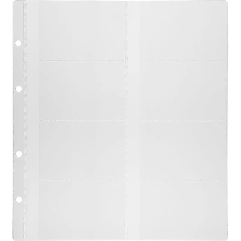 Сменный вкладыш 'Комус' предназначен для размещения в визитнице с держателем на кольцах. Рассчитан на 8 карточек. Изготовлен из ПВХ, прозрачный, с антибликовой фактурой. Размер вкладыша — 60×98 мм. Размер изделия — 210×240 мм. Данный вкладыш для визитниц подходит к визитнице: арт. 329708.