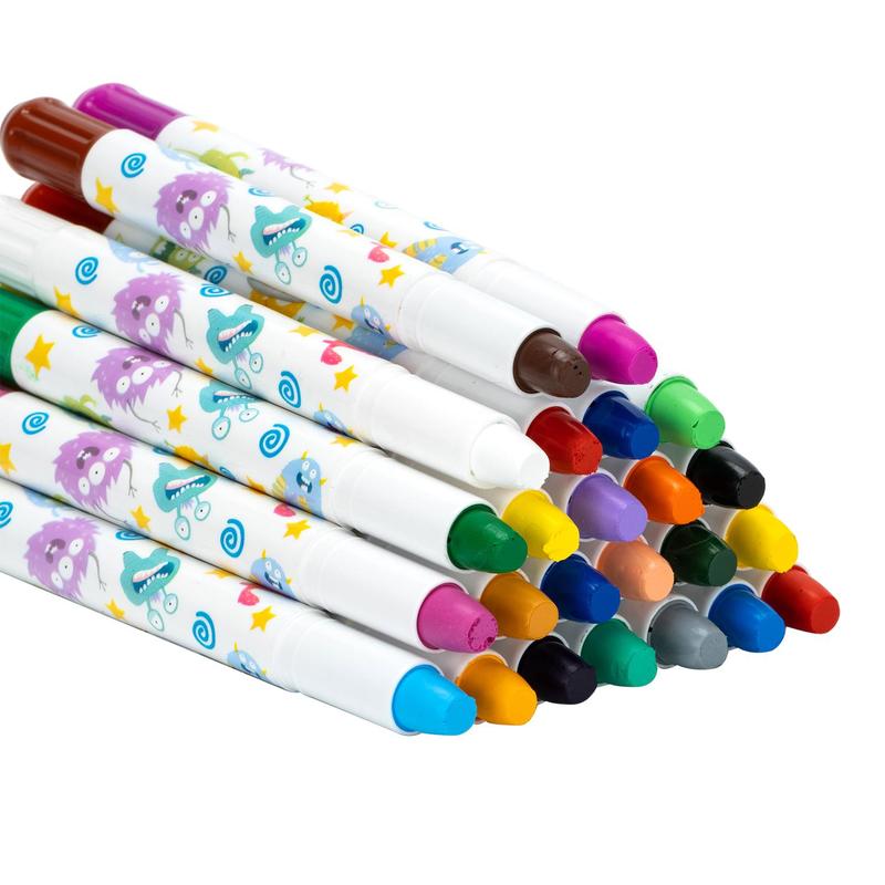 Мягкие гелевые мелки Deli Gel Crayon для рисования, раскрашивания или для художественных проектов. Сделать свой рисунок ярче и интереснее — легко. Ультрамягкие гелевые мелки в пластиковом поворотном корпусе рисуют более мягко, чем обычные восковые. Благодаря яркому дизайну с мультяшными персонажами, рисование превращается в веселое увлекательное занятие. Гелевые мелки Deli Gel Crayon — это гарантия ярких насыщенных цветов, а эргономичная круглая пластиковая форма корпуса создаст дополнительный комфорт при длительном рисовании. Пластиковый корпус не дает рукам пачкаться. Продукция изготовлена из экологически чистых материалов. Рисунок с помощью кисти, которая идет в комплекте, размывается водой, в конце работы можно создать эффект рисования акварелью. Благодаря специальному составу, мелки являются нетоксичными. Легко смываемый водой состав, облегчает чистку и стирку вещей, при случайном попадании на одежду. Хорошо подходят для маленьких детей. Цвета мелков соответствуют естественным природным цветам, что положительно влияет на формирование правильного цветового восприятия, развитие творческих способностей ребенка. Удобный клип на колпачке позволяет фиксировать мелок на ежедневниках, бумагах и карманах одежды. Хорошо подойдет детям в качестве презента на день рождения, на праздник, утренник. Упакованы в коробку с европодвесом. Набор: 24 штуки.