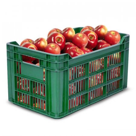 Ящик (лоток) полиэтиленовый зеленый для овощной и фруктово-ягодной продукции, штабелируемый. У ящика перфорированные боковые стенки и дно. Внешний размер ящика — 500x300x264 мм. Внутренний размер ящика — 470x275x225 мм. Объем — 30 л. Вес — 1,31 кг. Легкие, функциональные ящики изготовлены из первоклассного полиэтилена и предназначены для нагрузок до 20 кг. Полностью перфорированные полиэтиленовые ящики часто применяются как фруктовые или овощные ящики в небольших продуктовых магазинах или в супермаркетах.