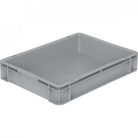 Ящик (лоток) полипропиленовый серого цвета, штабелируемый. У ящика сплошные боковые стенки и сплошное дно. Внешний размер ящика — 400x300x75 мм. Внутренний размер ящика — 355x255x63 мм. Объем — 5.75 л. Вес — 0.6 кг. Пластиковые сплошные ящики с гладким дном изготавливаются из морозостойкого полипропилена, устойчивого к воздействию различных химических составов. Рабочий диапазон температур от −10 до 95 градусов Цельсия. Ящики серии 800 выдерживают высокотемпературную чистку паром. Ящики устойчиво штабелируются друг с другом с крышкой (арт. 990530) или без крышки.