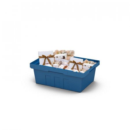 Ящик вкладываемый синий 600x400x270 мм. Отличное решение для комплектации товара на складских комплексах, фармацевтических предприятиях и последующей доставки заказов до конечного потребителя. Идеально работает на автоматизированных линиях и конвейерах. Подходит для работы с пищевыми продуктами.