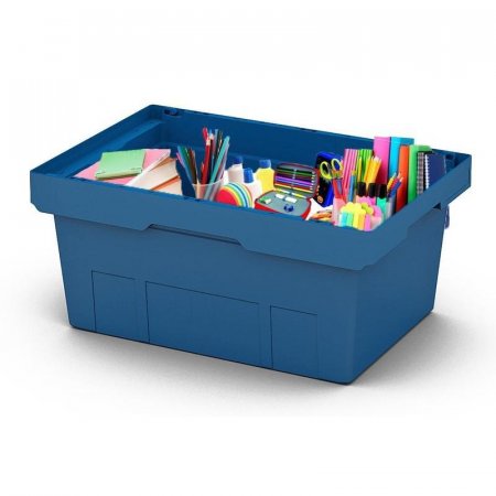 Ящик вкладываемый синий 600x400x270 мм. Отличное решение для комплектации товара на складских комплексах, фармацевтических предприятиях и последующей доставки заказов до конечного потребителя. Идеально работает на автоматизированных линиях и конвейерах. Подходит для работы с пищевыми продуктами.