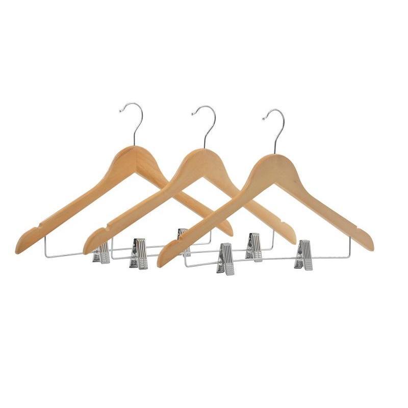 Плечики для одежды, с металлическими клипсами для юбок и брюк любого размера. Изготовлено из прочного натурального дерева — Анис, с покрытием — лак. Цвет — натуральный. Вешалка имеет металлический хромированный крюк, высотой 70 мм. Длина вешалки 480 мм, ширина плеча — 12 мм, длина металлической перекладины — 360 мм. Металлические клипсы имеют резиновые вставки, что обеспечивает бережное хранение одежды.