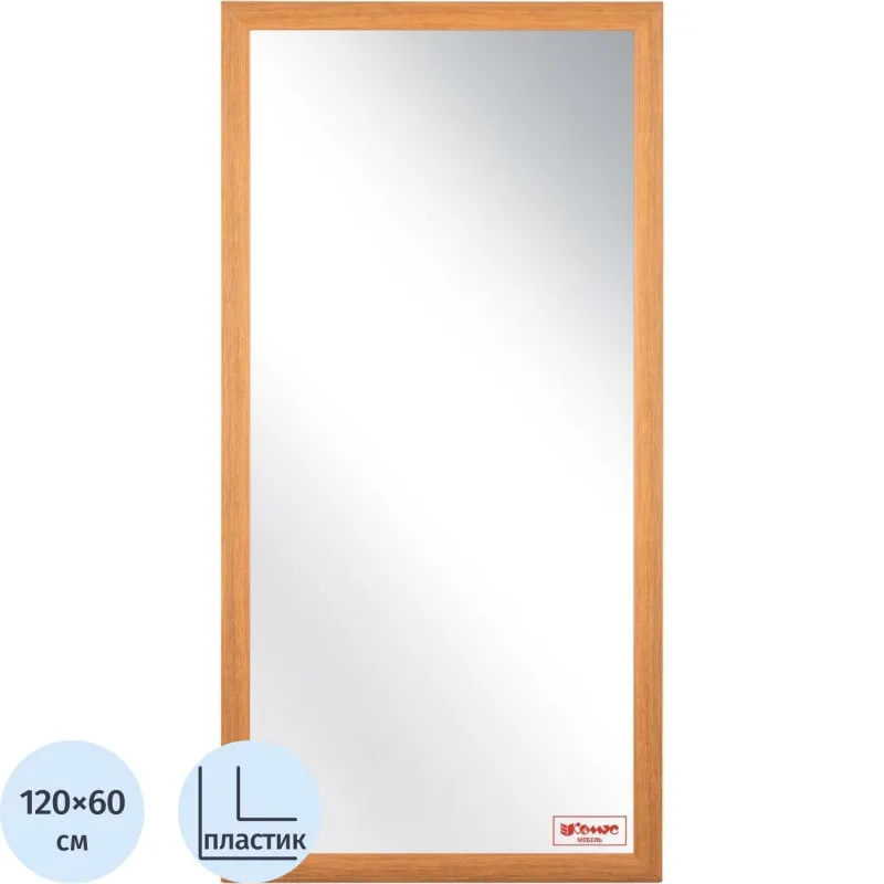 Зеркало настенное Комус Мебель НБ68 в багетной раме из влагостойкого вспененного полистирола. Зеркальное полотно марки Mirrox 3G влагостойкое, экологически чистое. Толщина составляет 4 мм. Размер 60×120 см. см. Упаковано в целлофан, в коробку из трёхслойного ударостойкого гофрокартона марки Т24. Крепежи к стене — скрытые пластины, позволяющие вешать зеркало как вертикально, так и горизонтально. В комплекте имеется дюбель-костыль.
