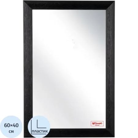 Зеркало настенное Комус Мебель НБ72 в багетной раме из влагостойкого вспененного полистирола. Зеркальное полотно марки Mirrox 3G влагостойкое, экологически чистое. Толщина составляет 4 мм. Размер 40×60 см. Зеркало обрамлено влагостойкой рамой из ПЛС чёрного цвета, ширина рамы — 40 мм. Упаковано в целлофан, в коробку из трёхслойного ударостойкого гофрокартона марки Т24. Крепежи к стене — скрытые пластины, позволяющие вешать зеркало как вертикально, так и горизонтально. В комплекте имеется дюбель-костыль.